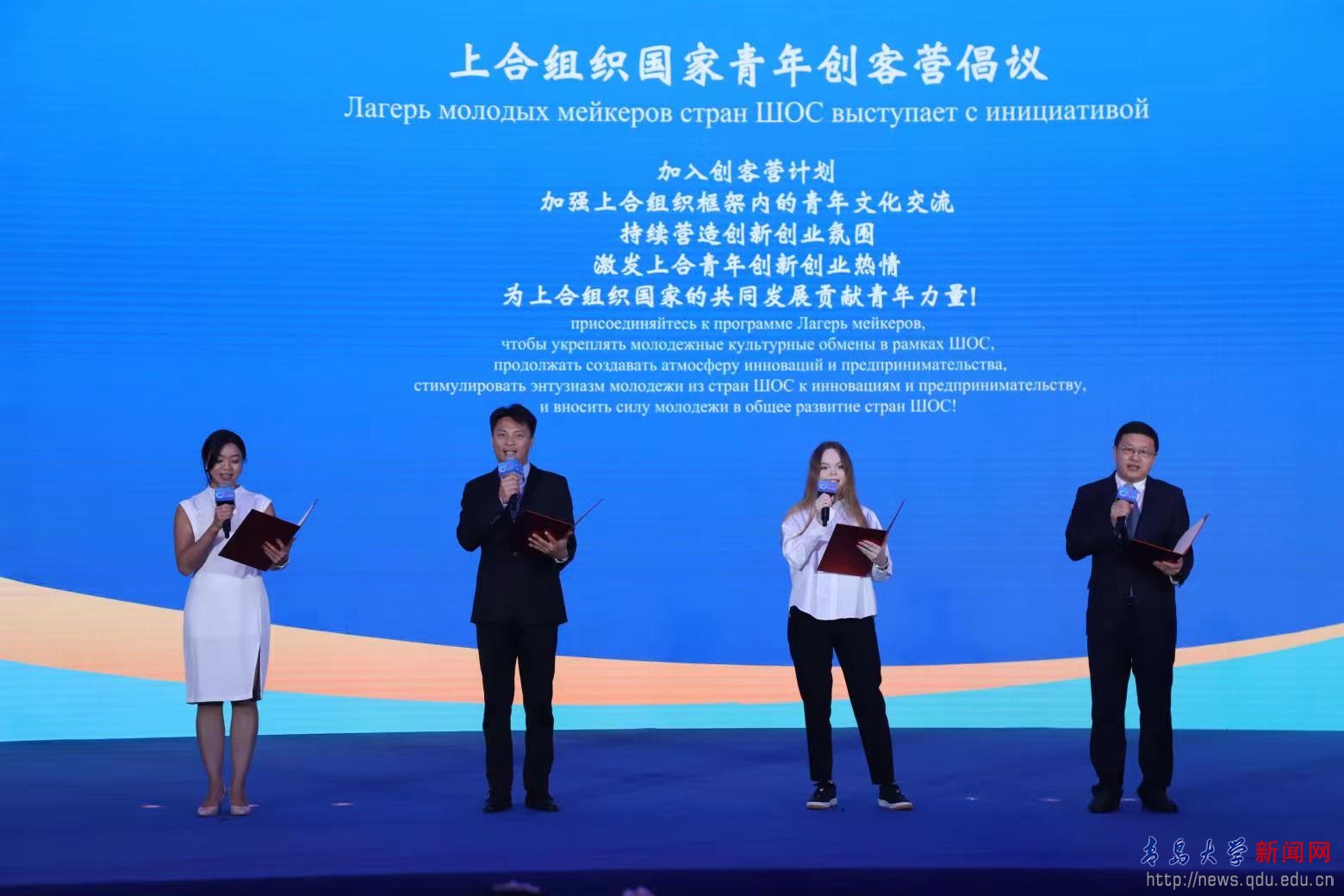 活动现场,师生代表共同发布了《上合组织国家青年创客营倡议》,倡议上合组织国家青年加入创客营计划,加强上合组织框架内的青年文化交流,持续营造创新创业氛围,激发上合青年创新创业热情,为上合组织国家的共同发展贡献青年力量。该创客营旨在打造共建共享、融通中外的青年创新创业平台,将汇聚全球知名高校、企业和创客,以线上线下相结合的方式,开展文旅、商贸、人工智能等领域活动。
