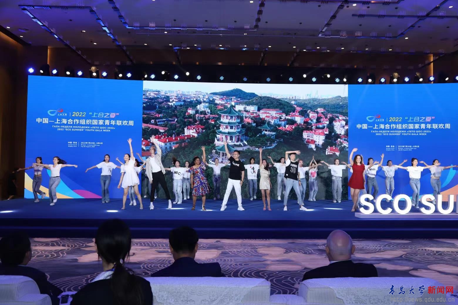 新闻网讯 7月28日,2022“上合之夏”中国-上海合作组织国家青年联欢周活动在青岛胶州启动,上合组织经贸学院办公室会同国际教育学院组织15名留学生参加活动。
