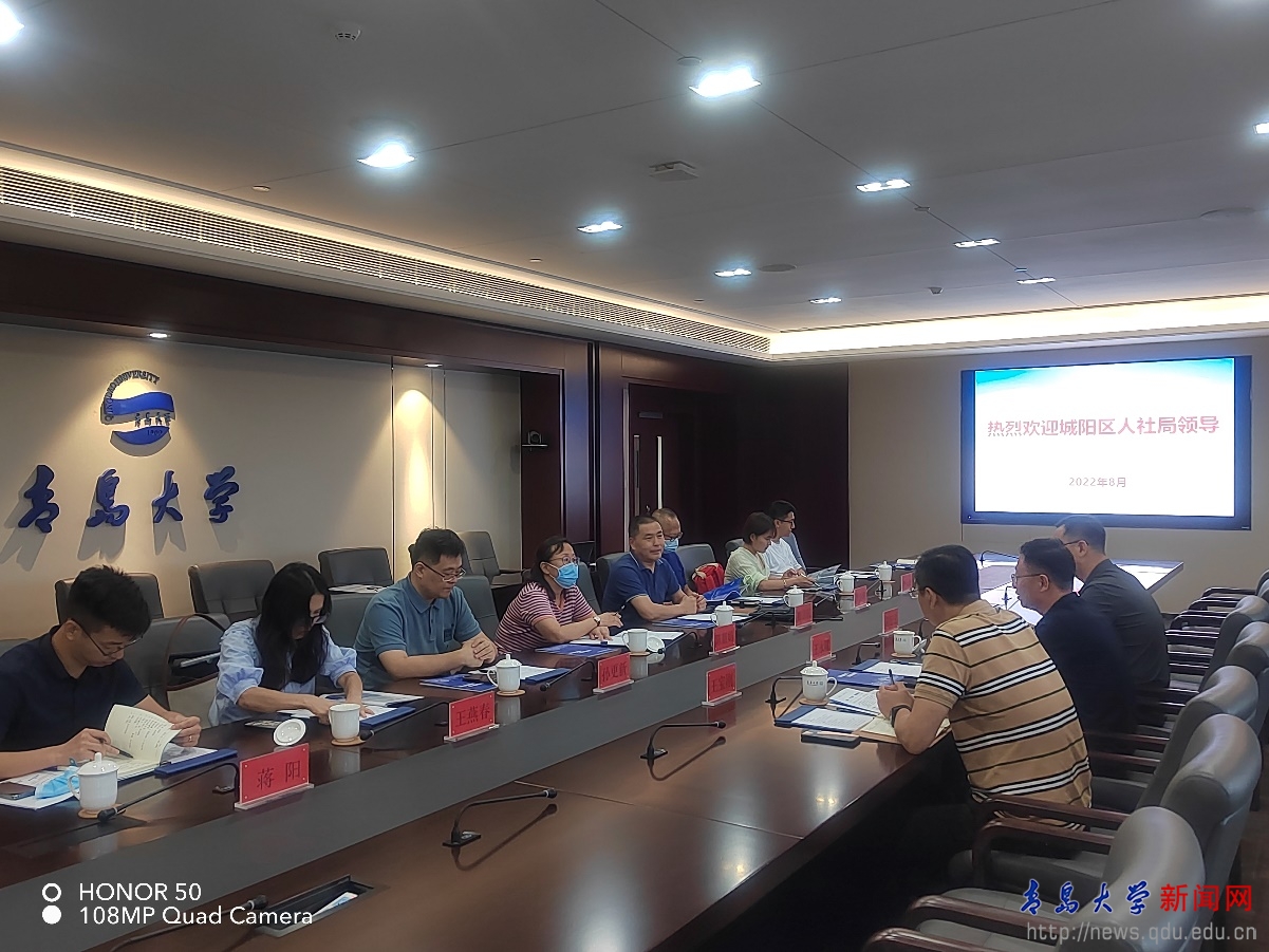 新闻网讯 8月10日,城阳区人社局党组成员王永曜一行到访鸭脖, 学校人力资源处处长陈韶娟、产业技术研究院执行院长崔言民等陪同座谈。