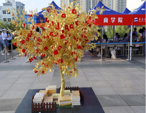 各学院负责迎新工作的学工队伍也亮点纷呈,尽展学工风采。商学院为新生设置了一颗金黄色的“心愿树”,树上挂有锦囊,是学院为新生准备的独具亮点的祝福,里面有众多礼品,包括整套四级真题、《习近平新时代中国特色社会主义思想学习纲要》、《红星照耀中国》、《鲁迅全集》等书籍。物理科学学院设立党员先锋服务岗,开展迎新志愿服务活动。“放心把孩子交给我们,我们志愿者会陪同他们完成报到的。”满脸通红、汗流浃背的学生党员说道,这是党员先锋服务岗的同志们一遍又一遍地对前来送新生入学的家长们的叮嘱。环境科学与工程学院将知识应用于学院迎新工作之中,研发去甲醛试剂以及其他环保新材料,帮助新生净化宿舍空气,去除异味。师范学院将厚植师范文化氛围作为新生教育“入学第一课”,通过设计专属宿舍门贴与宿舍公约,张贴特色作品,赠送专属字帖等方式向学院新生传递“立师志,修师德,博师学,练师功”的学院价值观,展现学院教师教育特色。