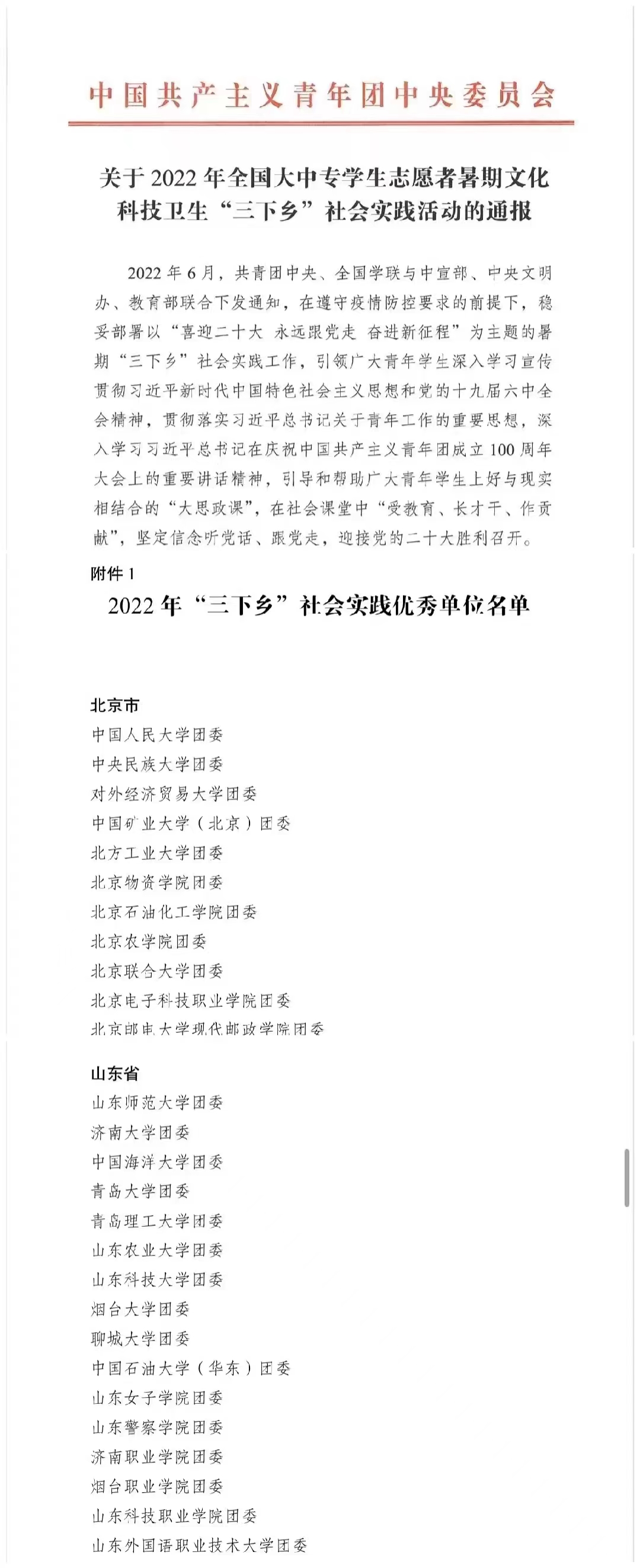 新闻网讯 为深入学习贯彻习近平新时代中国特色社会主义思想和党的十九届历次全会精神,深入学习习近平总书记在庆祝中国共产主义青年团成立100周年大会上的重要讲话精神,引导和帮助广大青年学生上好与现实相结合的“大思政课”,团中央组织开展2022年全国暑期文化科技卫生“三下乡”社会实践活动总结,YABO鸭脖团委荣获2022年暑期“三下乡”社会实践全国优秀单位。