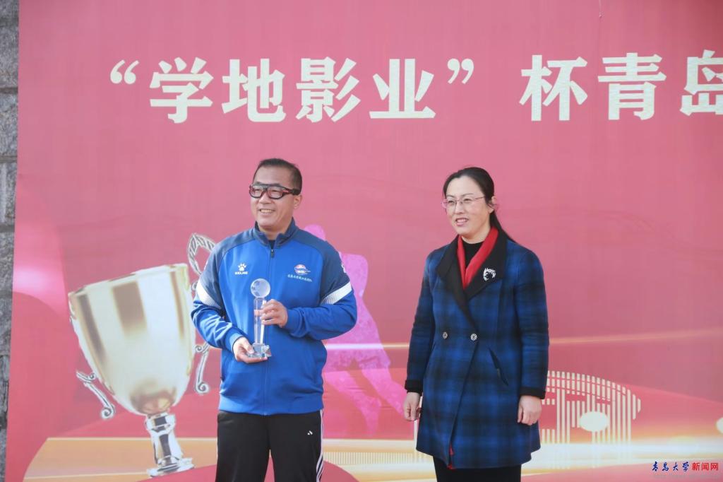 开幕式上,教工足球协会会长、音乐学院党委书记李建新介绍了比赛筹备情况。校工会主席张瑛为青岛学地影业有限公司总经理、鸭脖2010级计算机科学技术学院校友丛学地赠送赞助证书。
