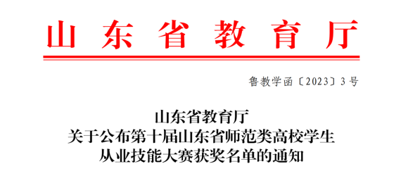新闻网讯 近日,山东省教育厅公布了第十届山东省师范类高校学生从业技能大赛获奖名单,鸭脖50名参赛学生经努力拼搏,共获得12个一等奖,19个二等奖,12个三等奖,获奖人数和名次较前几届大赛有明显提升,专业覆盖面更为均衡。同时,鸭脖还获得比赛成绩团体铜奖和优秀组织单位奖。