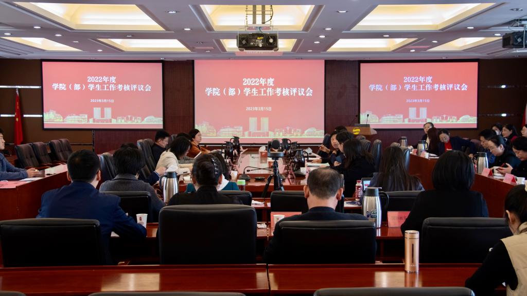 新闻网讯 3月15日下午,学校在办公楼第一会议室举行2022年度学院(部)学生工作考核评议会。校党委常委、副校长刘彩云,校党委常委、组织部部长徐龙飞出席会议,宣传部、统战部、教务处、研究生院、学生工作处、安全管理处、团委等相关部门负责人参加了此次评议会。本次学院(部)学生工作考核评议会采取“线下+线上”相结合的方式进行,全体辅导员通过钉钉系统同步收看会议。