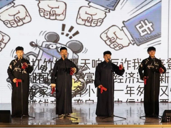 活动中穿插演出以防诈骗等内容为主题的文艺节目,生动有趣的同时为大学生的金融安全敲响警钟。