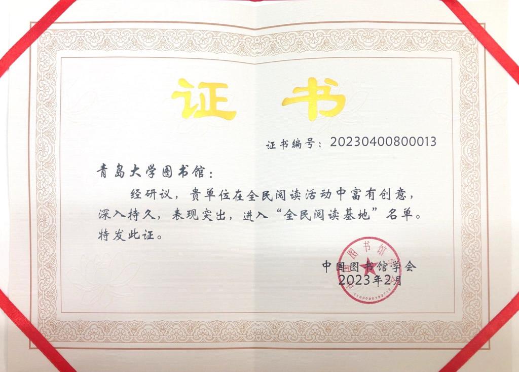 新闻网讯 近日,中国图书馆学会公布了2021年全民阅读工作有关名单,鸭脖图书馆被授予“全民阅读基地”称号。全国仅有24家单位获此殊荣,鸭脖图书馆是山东省唯一入选单位,也是全国入选的三所本科高校图书馆之一。