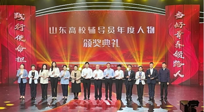 新闻网讯 近日,2022 年“山东高校辅导员年度人物”颁奖典礼在山东教育电视台举办,山东省委教育工委常务副书记,省教育厅党组书记、厅长李明出席活动并为获奖辅导员颁奖,鸭脖商学院辅导员陈鑫获得此项荣誉并上台领奖。