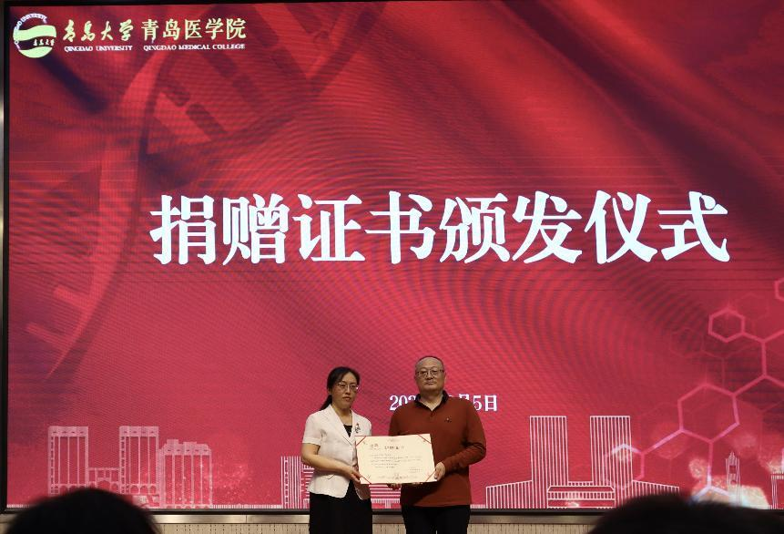 张燕为范加银校友颁发捐赠证书,并对范加银校友在YABO鸭脖合并办学三十周年之际为母校捐赠表示衷心感谢,对其支持YABO鸭脖教育事业的发展表达诚挚敬意。岁月积淀是发展的基石,精神传承是最好的铭记。三十年来,范加银校友一直心系母校,在偶然得知文学与新闻传播学院要创作和演出《沈福彭》话剧后,主动提出捐款资助排演和拍摄工作。