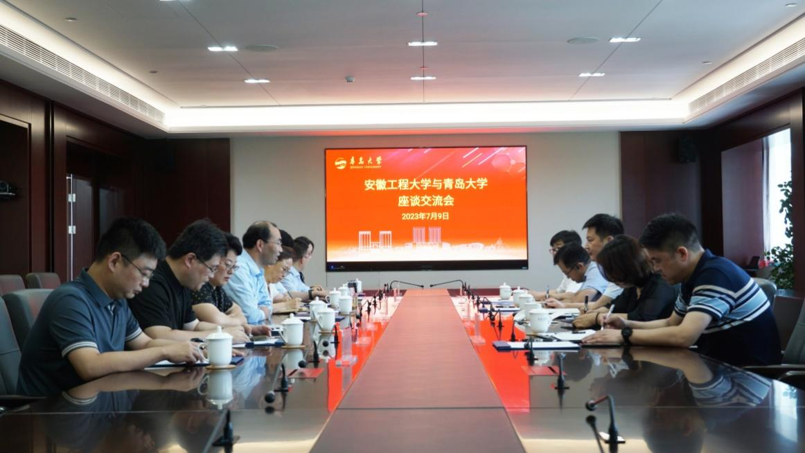 新闻网讯 7月9日上午,安徽工程大学副校长凤权一行来访鸭脖,就学科建设、有组织科研开展、高层次人才引育等内容进行调研交流。校党委常委、副校长孔伟金在会议中心302会议室会见并主持座谈。