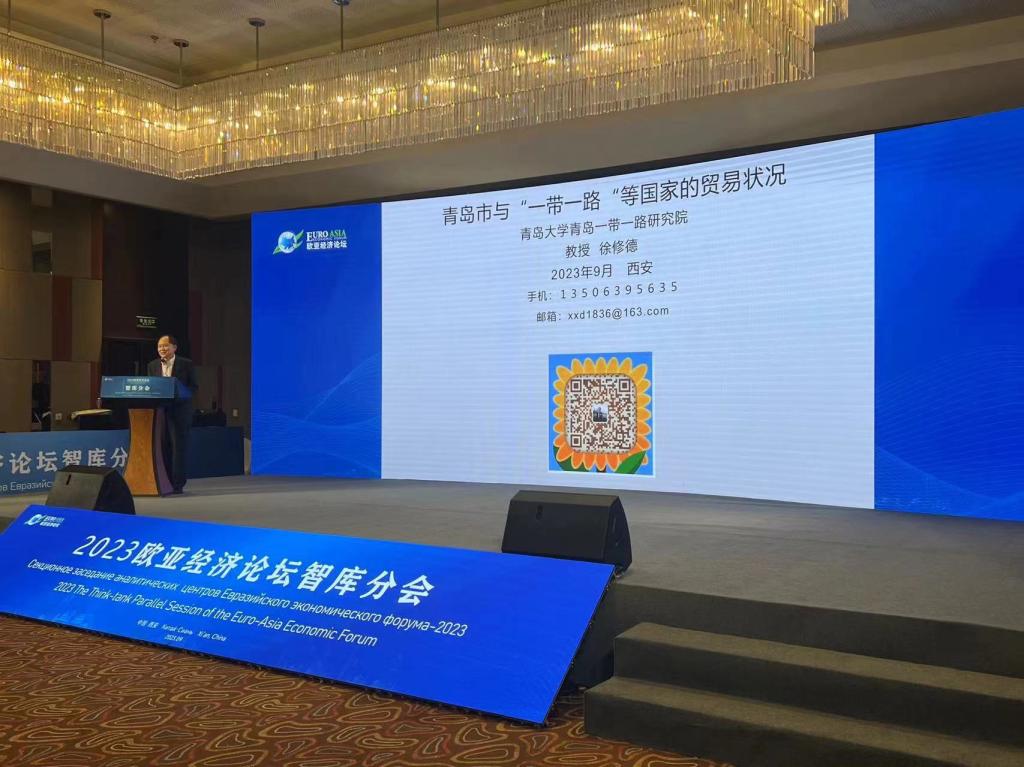 在以“新时代的欧亚经济合作:动力、机遇与未来”为主题的欧亚经济论坛智库分会上,鸭脖“一带一路”研究院院长徐修德受邀作了“青岛市与‘一带一路’等国家的贸易状况”的报告,并接受财经通讯社的专访。