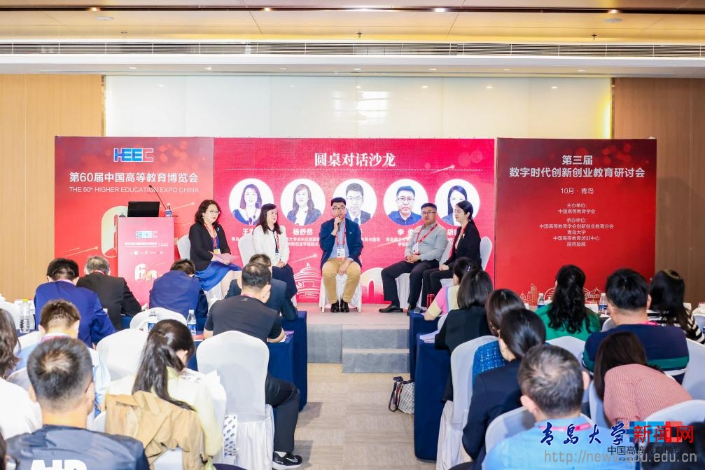 第二阶段对话沙龙期间,云南大学本科生院副院长、创新创业学院院长杨舒然,燕山大学创新创业教育与指导中心主任张杨,青岛理工大学创新创业学院院长李俊,宁波职业技术学院创新创业学院院长胡晓霞,围绕“新时代国家级创新创业学院(实践基地)建设的思考与实践”主题,聚焦国家级创新创业学院(实践基地)建设经验、平台赋能创新创业教育发展、面向未来的创新创业型人才培养模式改革、融合数字技术的双创课程体系构建等问题,展开深入交流讨论。