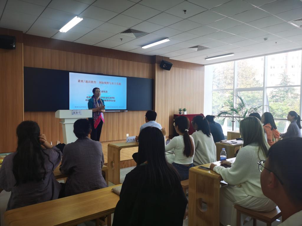 座谈会后,庞海芍在浮山书院大音堂做题为“素质/通识教育:国际视野与本土实践”的学术讲座。讲座以国际视野梳理通识教育的内涵及其相关概念,介绍了美国著名高校的通识教育模式,并联系中国国情,分析素质教育、通识教育的本土实践经验,探讨素质教育和通识教育对大学生成长的意义与路径。