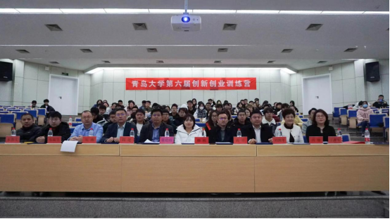 李沧区公共就业和人才服务中心创业服务科科长杨杭,山东汉风控股集团有限公司董事长董聪政,青岛华赛伯曼医学细胞生物有限公司董事长高青,青岛寰茂达智能科技有限公司总经理邱进,潍坊吉涛医学科技有限公司总经理刘凯年,中关科创(青岛)创新科技有限公司招商副总监刘涛,青岛睿海财智私董会教育咨询有限公司执行董事冯瑞,星河入海文化传播有限公司执行董事张淑昱,启迪大街(青岛)科技服务有限公司代表卞金玉,YABO鸭脖合作发展处处长张燕,教务处副处长、创新创业学院常务副院长王海荣及学校就业中心负责人、创新创业训练营指导教师和训练营全体营员出席。