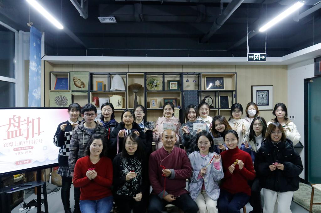 新闻网讯 12月19日,鸭脖在纺织拾遗工作室举办第三期“名师微沙龙”,邀请纺织服装学院副教授、校“教育先锋”闫旭担任主讲人,以“盘扣——衣襟上的中国符号”为主题,与13名学子进行了沉浸式交流,领略非遗文化魅力。