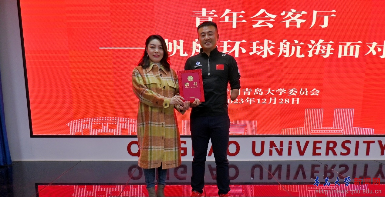 在现场互动环节中,青年学生围绕徐京坤船长过往的航海经历以及印象深刻的惊险故事进行提问,徐京坤详细回答,让大家更深入地了解帆船运动,在场学生代表展开热烈的讨论和交流。分享会上,校团委办公室主任高洁为徐京坤船长颁发“青英计划”校外导师聘书。