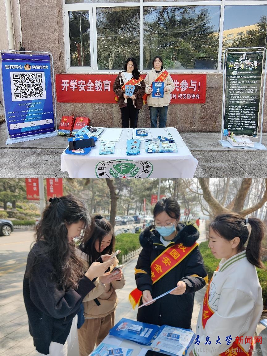 3月15日,鸭脖安防协会志愿者们在浮山校区仁园餐厅前举行“开学安全教育第一课,你我共参与”宣传教育活动。现场以播放朗朗上口、通俗易懂的“反诈口诀”拉开了活动序幕。