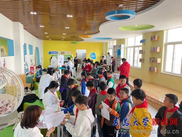 3月29日,农工党、民盟YABO鸭脖附属医院专家团队走进崂山区崂发小学,对学生们进行生长发育检测。