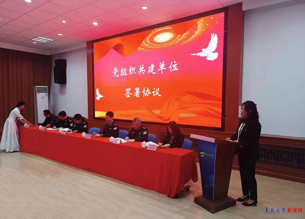新闻网讯 为深入贯彻落实党的二十大精神,拓展党建共建工作的深度和广度,提升党建工作质量,为进一步加强平安校园建设,提高对来华留学生的管理服务水平,加强对外籍留学生的法制安全教育,及时应对和规范处置突发应急事件,促进警民团结,密切警民关系,4月9日下午,校部机关一总支安全管理处党支部、国际教育学院党委、青岛市公安局出入境管理局签证科党支部、青岛市公安局出入境管理局外管科党支部、青岛市公安局崂山分局麦岛派出所支部在敏行楼三楼多功能厅举行了党组织共建签约仪式,共同签订了党组织共建协议书。