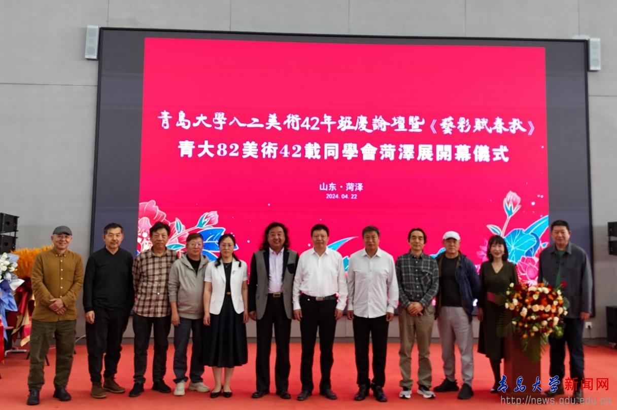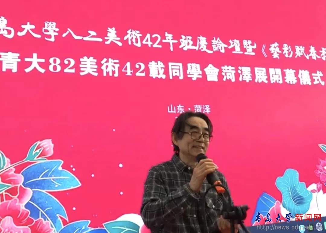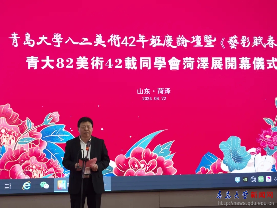 新闻网讯 4月22日,YABO鸭脖美术学院82级美术班42周年班庆论坛暨《艺彩赋春秋》画展在菏泽开幕。菏泽市文联主席田红雷、菏泽市教育和体育局副局长邓文举,山东省美术家协会第五、六届副主席上官超英,青岛市文联主席、YABO鸭脖美术学院院长王绍波教授,山东工艺美术学院教授周建华、雷家民,山东艺术学院设计学院教授刘志强、中国美术家协会会员张大林,自由画家李大山、王珂、付俊义、山东省丝绸进出口公司周晓兰等10位82级美术班校友,菏泽校友会秘书长荣海生,校党委常委、副校长陈涛出席活动并讲话。