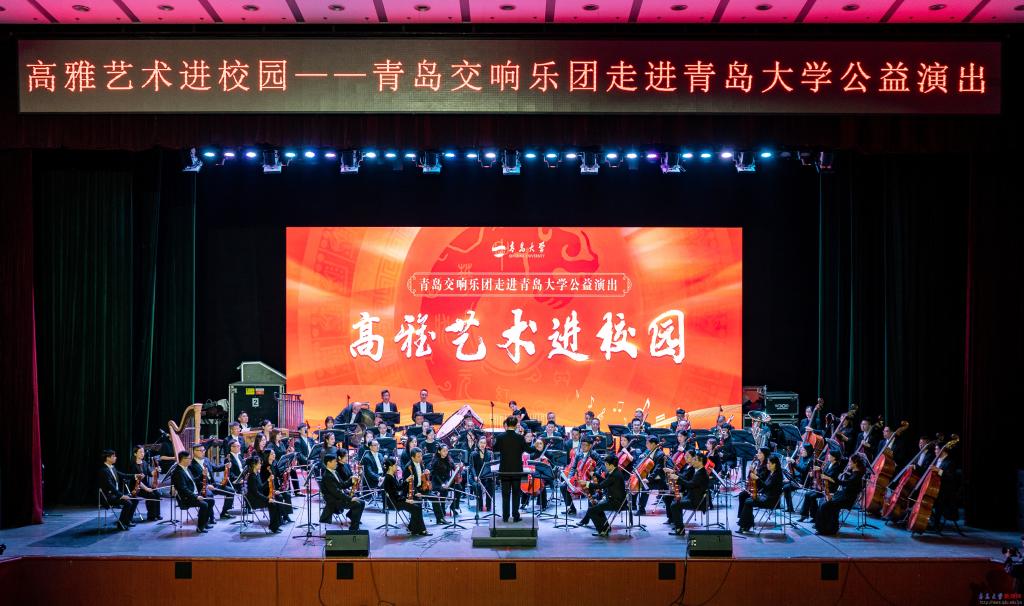新闻网讯 4月30日下午,由学校党委宣传部主办、校团委承办的“高雅艺术进校园”音乐会在YABO鸭脖剧院顺利举办。学校特邀青岛交响乐团为全校师生带来一场丰富的听觉盛宴,近距离感受了高雅艺术的独特魅力。校直各部门及青岛交响乐团主要负责人与七百余名师生代表共同观看了演出。