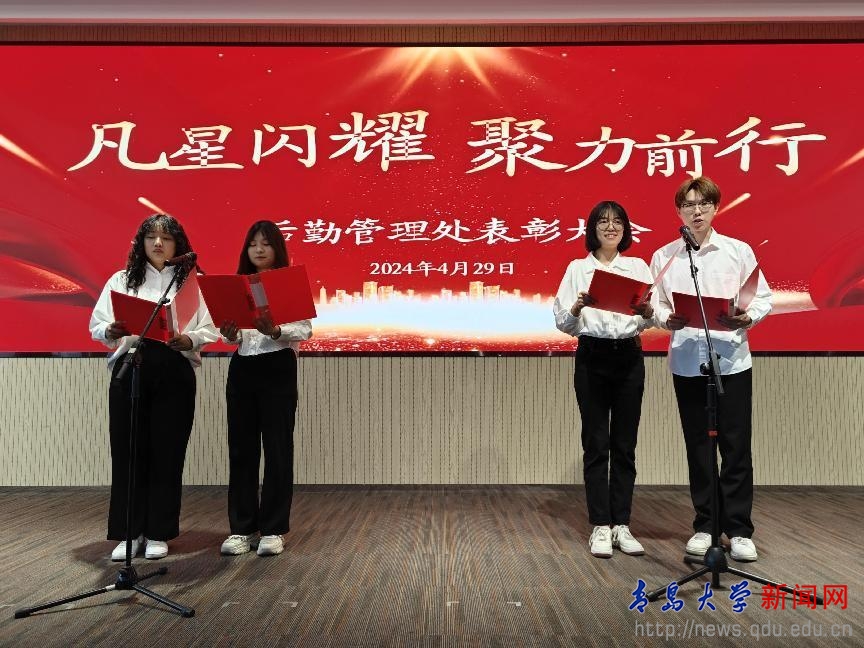 新闻网讯 为大力弘扬“真诚奉献、追求卓越”的后勤精神,激励广大员工以更饱满的热情、务实的作风投入到学生的后勤保障工作中,4月29日下午,后勤管理处举办“凡星闪耀,聚力前行”表彰会。后勤班子成员、干部职工、合作企业员工代表和“权小益”等学生组织代表一百余人参加了大会,大会展示了后勤2023年取得的优异成绩,共同庆祝即将到来的五一劳动节。