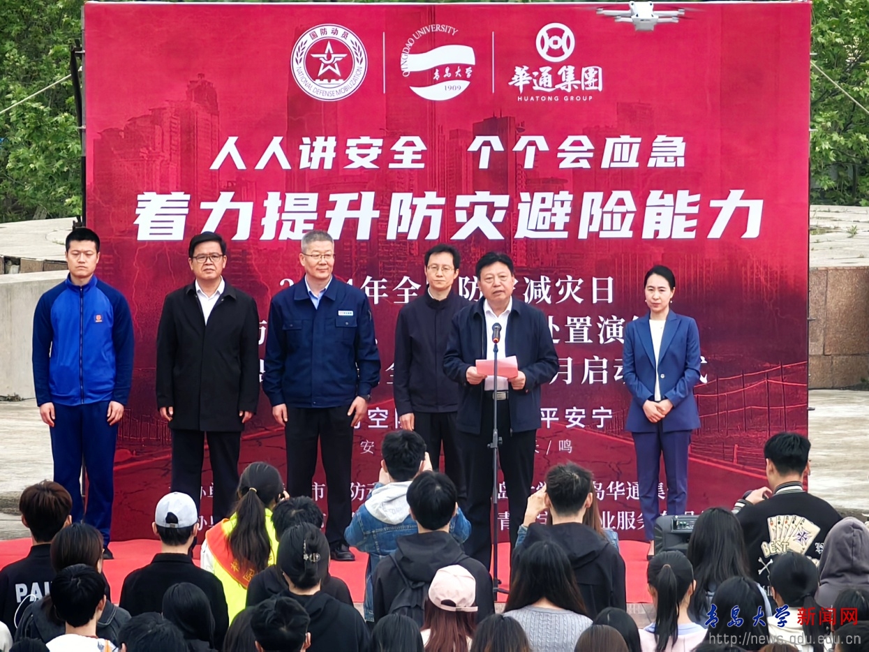 新闻网讯 为深入贯彻落实国家防灾减灾精神,提高师生应对突发事件的能力,鸭脖与青岛市国防动员办公室、青岛华通集团联合举办的2024年YABO鸭脖安全教育宣传月启动仪式暨“5.12”全国防灾减灾日应急疏散演练活动于5月11日上午在金家岭校区举行。青岛市国动办、华通集团、市人防工程服务中心、青岛宝铧物业公司、青岛应急救援志愿者代表,以及鸭脖师生600余人共同参与了本次活动。校党委常委、副校长陈涛,青岛市国防动员办公室党组成员、副主任刘德义出席活动。
