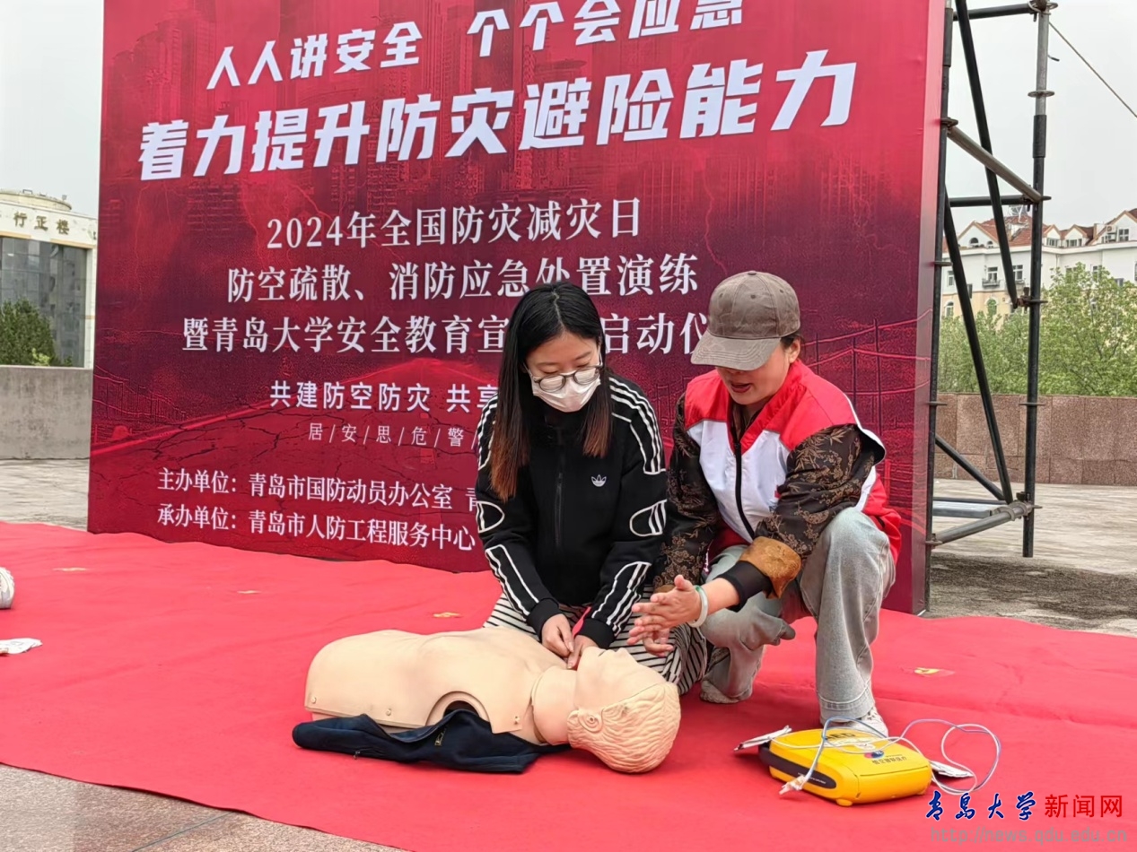 活动现场,主办方还特邀青岛市应急救援志愿者,以“现场演示+实践操作体验”的模式向师生们展开应急安全知识科普培训。 现场演示和模拟操作心肺复苏急救操作以及AED(自动体外除颤器)的使用方法,手把手指导师生正确开展自救互救技能。