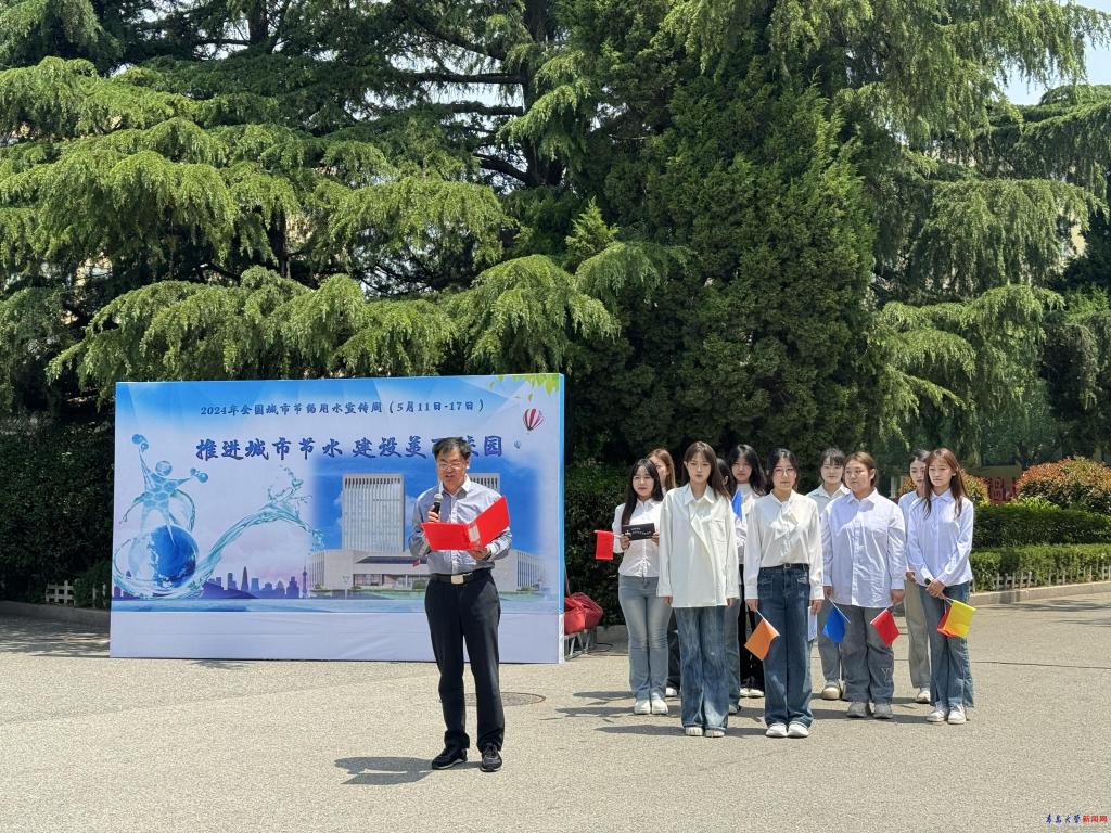 新闻网讯 5月17日上午,在全国第33个城市节约用水宣传周到来之际,由YABO鸭脖后勤管理处主办,校团委、环境科学与工程学院、音乐学院共同承办的“助力城市节水,建设美丽校园”节水宣传周活动,在浮山校区后勤服务大厅前广场拉开帷幕。后勤管理处处长刘清亮致辞,青岛市水务管理局供水事业部部长卢正波,环境科学与工程学院党委书记张作祥、副书记孙竹媛,音乐学院党委书记李建新、副书记孙建华,校团委副书记王楠,后勤党委书记王静及学生代表等参加活动。