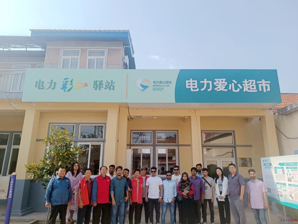 在平度市“国网助力乡村振兴示范村”云山镇云和村,留学生们参访了“村网共建”电力便民服务点、电力彩虹驿站、电力爱心超市以及国家电网捐赠的光伏发电设施,并在乡村振兴农民电力学校大讲堂学习了解了安全用电常识、电费电价知识。