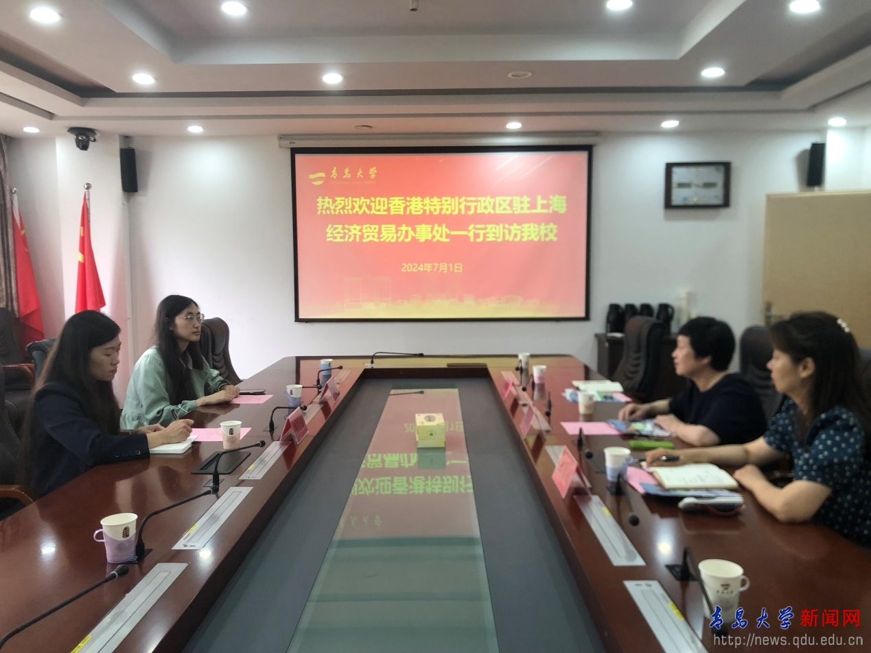 新闻网讯 7月1日上午,香港特别行政区政府驻上海经济贸易办事处(后简称“驻沪办”)入境事务主任杨芷翘、行政助理张思瑶一行两人来访鸭脖。学校统战部常务副部长、台港澳事务办公室主任王春光等陪同交流。