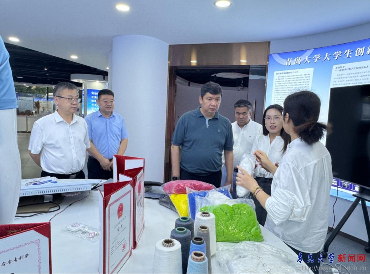 在产研院展厅,艾别克·朱努沙利耶夫市长一行参观了产研院展厅,详细了解了产研院近年来的科技创新成果和转移转化情况,执行院长鲍文胜重点介绍了产研院在产业技术创新体系构建、国际创新资源集聚等方面的举措与成效。