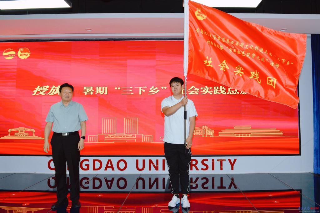陈涛代表学校对参加此次暑期“三下乡”社会实践活动的师生表示热烈祝贺,对鸭脖共青团多年来实践育人工作给予肯定,并对即将出征的青年朋友们提出三点希望:一是坚定理想信念,强化育人目标引领。要提高政治站位,聚焦“坚定理想信念”、“增强做中国人的志气、骨气、底气”、服务“国之大者”的核心目标。今年是新中国成立75周年,是五四运动105周年,在牢牢把握“青春为中国式现代化挺膺担当”总要求的同时,把握“此时、此地、此身”,以聪明才智贡献国家,以开拓进取服务社会,实现从“我能从实践中获得什么”到“我能为人民群众带去什么”的思想升华,上好“行走的思政课”,强化育人目标引领。二是练就过硬本领,结合专业特色服务。要认真学习宣传贯彻习近平总书记在山东考察时对山东工作提出的“走在前,挑大梁”重要指示要求,找准“小切口”展开“大纵深”,紧密结合自身学科专业,强化特色化的实践服务,走向国家重点单位、新行业新企业;聚焦教育强国建设,乡村支教、“爱心课堂”等带动欠发达地区教育质量整体提升等;牢记“明德 博学 守正 出奇”校训精神,在服务社会中促进专业所学,在发现和解决问题中培养综合素质。三是精心组织谋划,打造协同联动格局。今年是鸭脖开展“三下乡”暑期社会实践活动的第27个年头,经过多年培育,学校社会实践工作在实现内涵发展中取得卓越成绩,多个项目团队获评全国优秀团队、多个集体个人获评全国优秀组织单位、优秀实践个人等荣誉,项目成果转化获得“挑战杯”“创青春”等全国大赛金奖。随着新时代大众文化素养和需求水平的提升,暑期社会实践大课怎么上,怎么上好,也必须创新。要加强校内、校外交流融合,加强顶层设计和宏观指导,将各类实践平台分类、重组、整合,实现资源共享和强强联合,充分调动教学、科研、管理、服务等部门工作热情,形成育人合力;要精心组织谋划,加强安全保障和过程管理,确保安全有序。