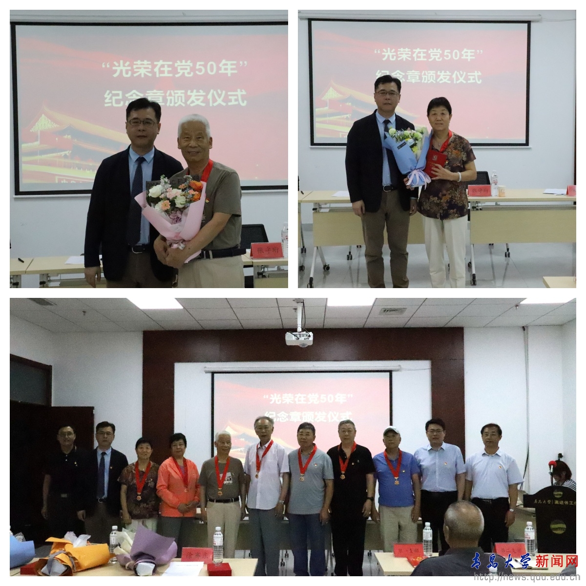 新闻网讯 7月15日上午,学校在浮山校区离退休党建活动室举行“光荣在党50年”纪念章颁发仪式。校党委常委、副校长牛海涛出席仪式并为杨春泉、徐骞东、宫玉香、张连芳、周正灵、韩知恩、王可深等7位“光荣在党50年”纪念章获得者代表颁发纪念章,校党委常委、组织部长张守珩宣读YABO鸭脖2024年“光荣在党50年”党员名单,2024年学校共有22位老党员获得“光荣在党50年”纪念章,其中附属医院5人。仪式由离退休党委书记、处长宋佐东主持。