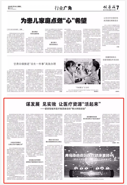 文章指出:建设紧密型城市医疗集团,是推动优质医疗资源下沉的务实之举,更是提升基层医疗服务综合能力的惠民良策。山东省青岛市作为紧密型城市医疗集团建设试点城市,近年来着力推进惠民政策落地落实。