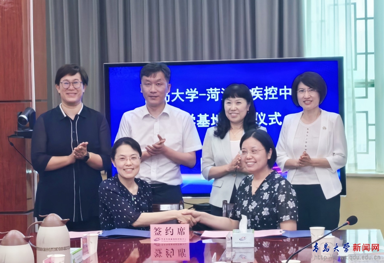 鸭脖公共卫生学院副院长沈晓丽教授介绍了学院本科生、研究生培养情况,并与马燕平一同签署《YABO鸭脖公共卫生学院与菏泽市疾病预防控制中心共建教学实践基地协议书》。