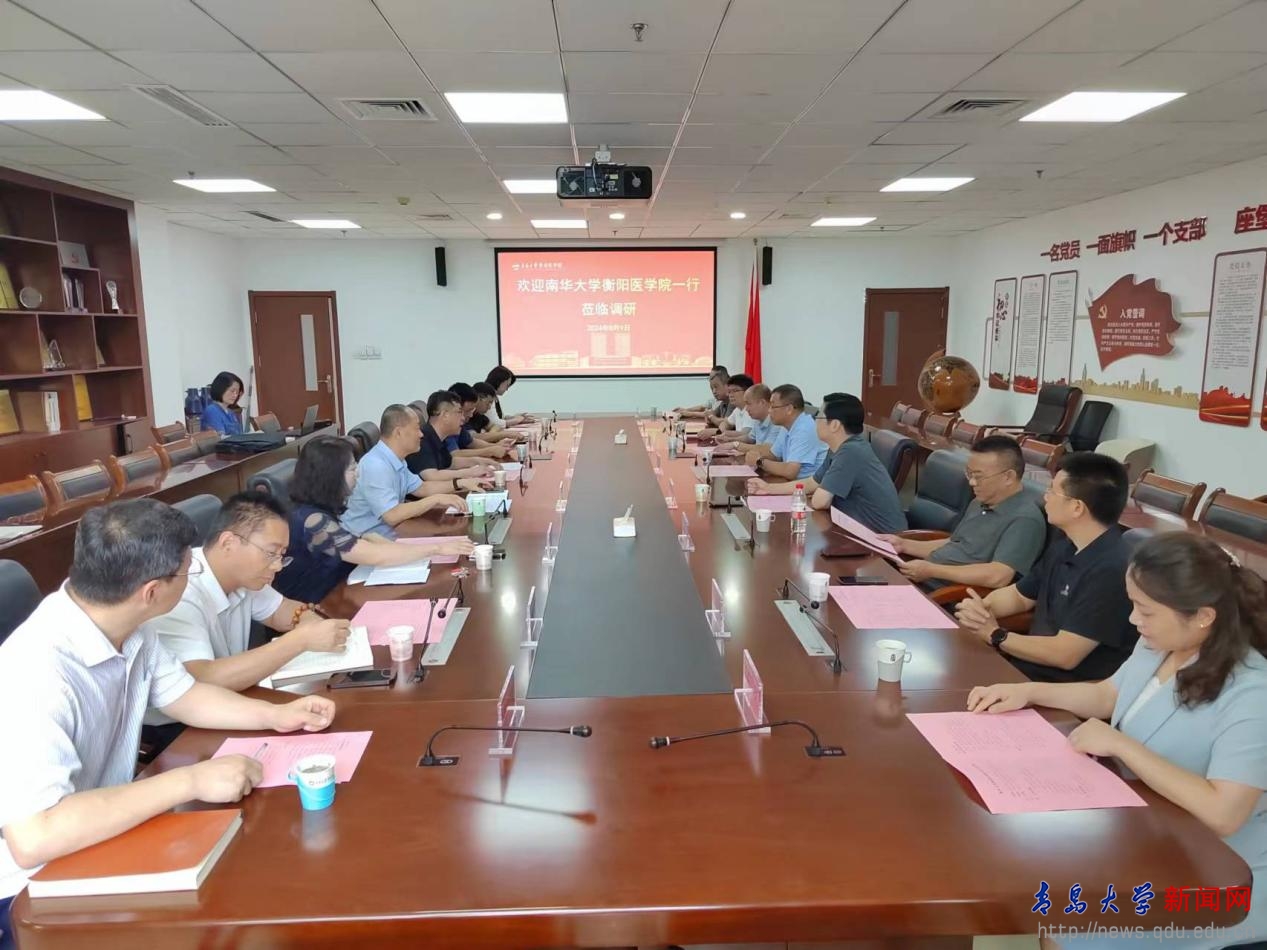 新闻网讯 8月9日上午,医学部在浩园医学教育综合楼A座215会议室举办座谈会,欢迎南华大学副校长姜志胜一行九人来医学部交流访问。校党委常委、副校长牛海涛,医学部副部长(主持工作)任贺,医学部党委常务副书记、第一临床医学院党委书记王有全,以及学部相关职能部门负责人参加座谈会。