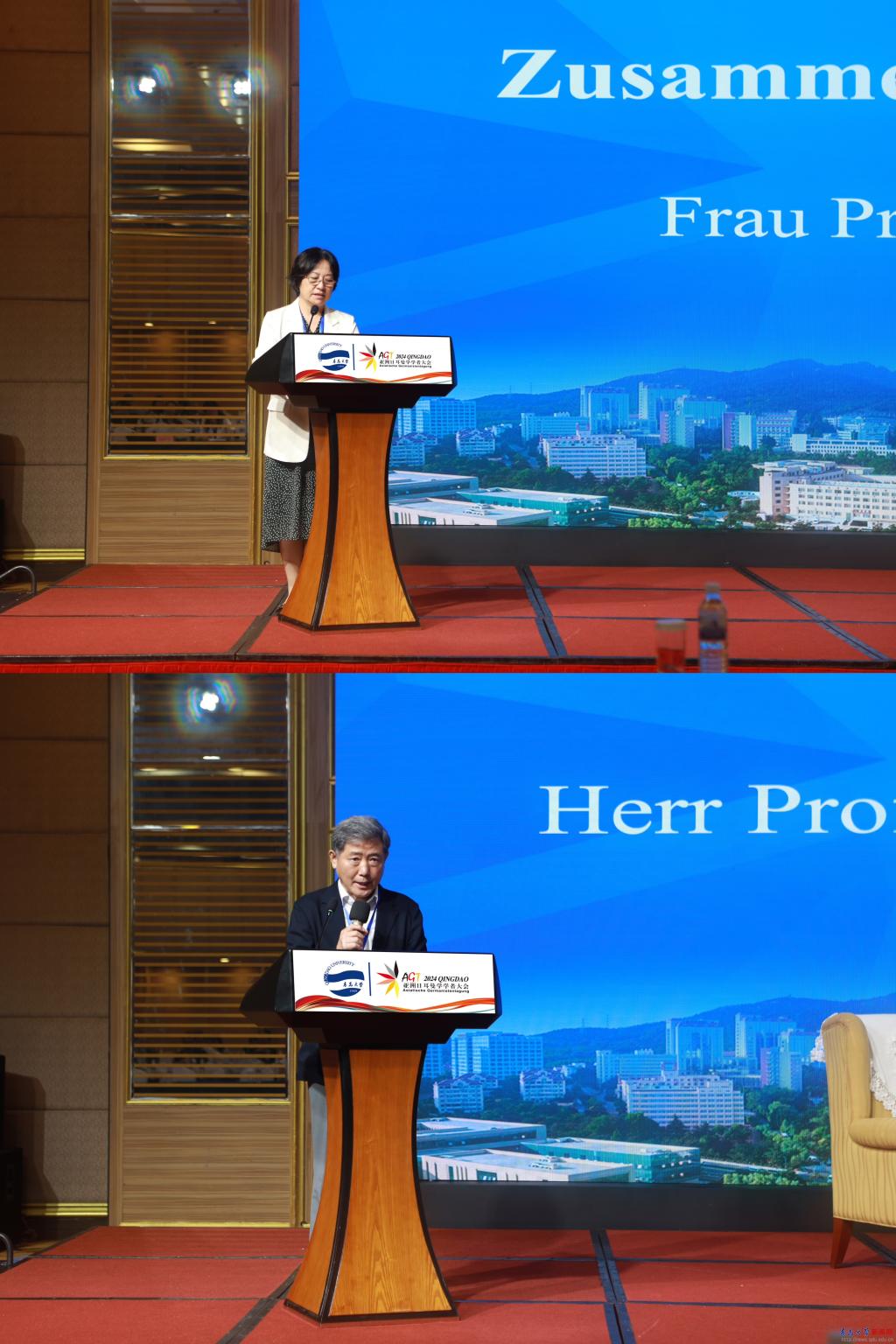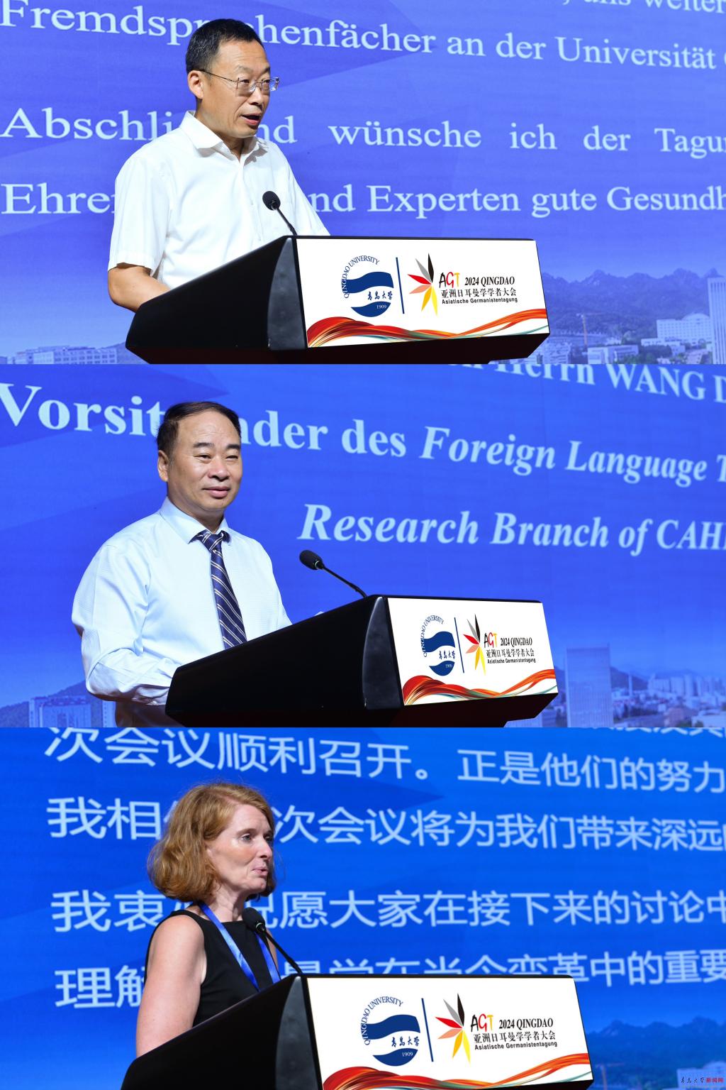 新闻网讯 8月26日,第十届亚洲日耳曼学学者大会在山东省青岛市隆重开幕。本次大会由鸭脖与中国高等教育学会外语教学研究分会联合主办,校外语学院承办,德国歌德学院北京分院、外语教学与研究出版社、校中德文化交流研究中心、山东省与德国交流合作研究中心以及YABO鸭脖巴伐利亚研究中心协办。大会以“技术·社会·文化——日耳曼学的时代挑战与机遇”为主题,共有来自中国、韩国、日本、德国、波兰、蒙古、印度尼西亚等7个国家的200余名学者参会。校党委常委、副校长刘恩贤出席大会开幕式并致辞。开幕式由鸭脖外语学院院长卞建华教授、德语系主任綦甲福教授主持。