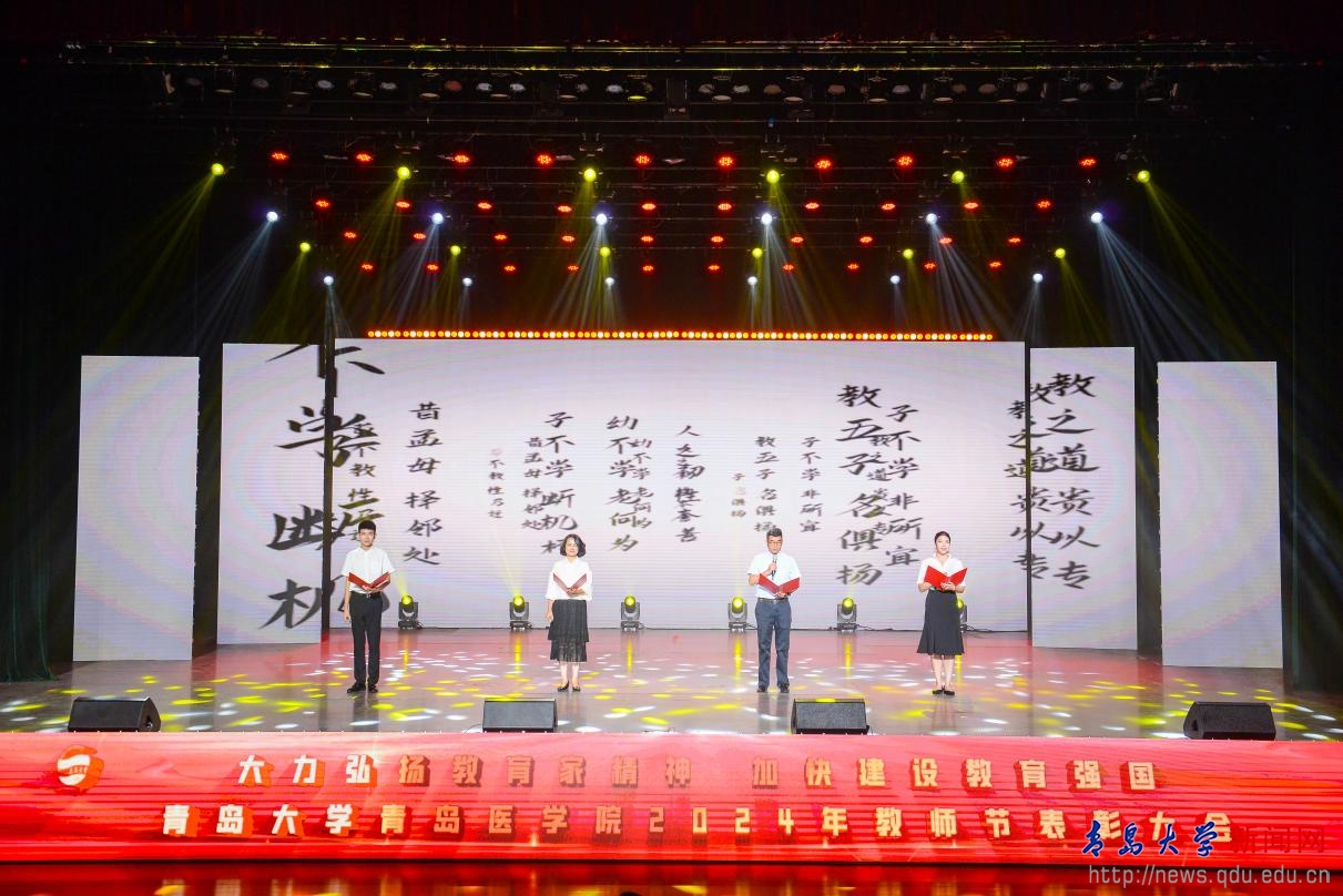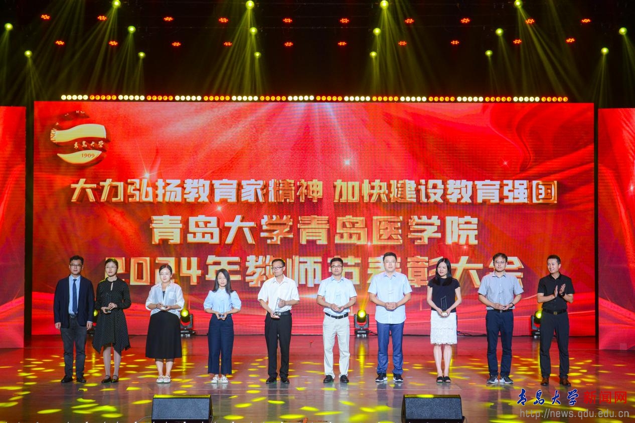 新闻网讯 在第40个教师节到来之际,医学部9月8日下午在鸭脖剧院隆重召开2024年度教师节表彰大会。校党委常委、副校长牛海涛,青岛青特产城集团商业公司总经理矫君章,校人力资源处、教务处、科技处、研究生院、合作发展处等相关部门负责人,医学部党政领导以及退休老教师代表出席大会。