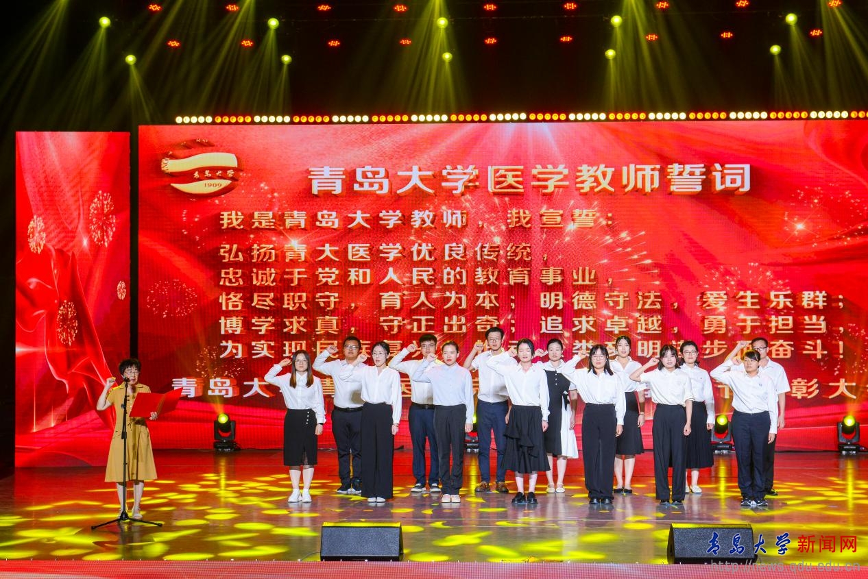 受表彰的先进集体和个人代表,各学院、研究院和驻青附属医院主要负责人,退休教师代表、新入职教师以及师生代表600余人参加大会。