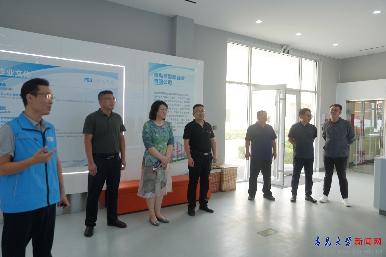 王海荣一行先后参观了青岛鼎泰盛新建材有限公司、青岛千里行集团有限公司等校友企业。青岛鼎泰盛新建材有限公司执行董事兼经理、鸭脖2001级校友张庆峰,莱西市姜山镇党委统战委员、鸭脖2005级校友王嘉祥陪同参观。