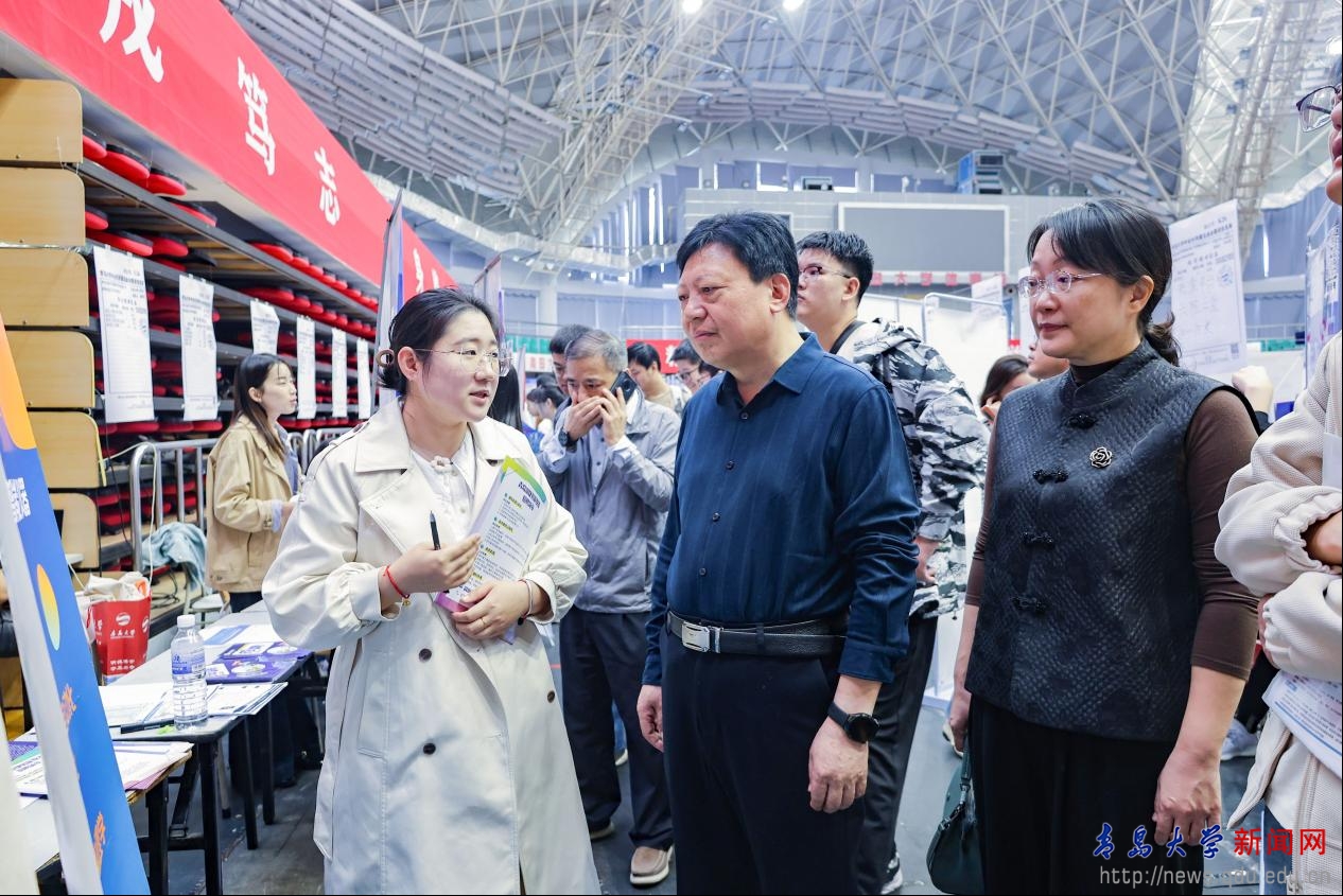 新闻网讯 10月13日,鸭脖2025届毕业生秋季大型供需见面双选会在青浮山校区体育馆顺利举办。此次双选会共吸引了近五百家用人单位入校招聘,提供就业岗位需求人数两万一千余个,五千余名毕业生到会应聘。校党委常委、副校长陈涛到现场了解企业岗位需求、学生应聘情况,与用人单位代表交流洽谈。