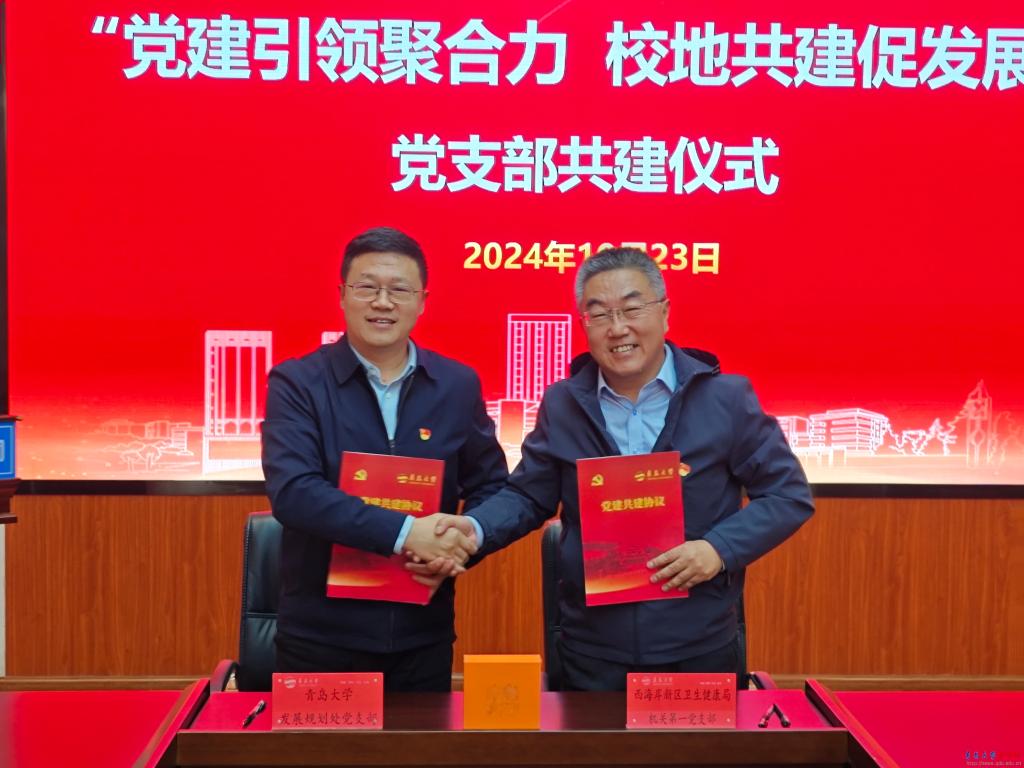 新闻网讯 为深入学习贯彻习近平新时代中国特色社会主义思想,创新基层党建工作载体,提高基层党建工作水平,促进高校与地方的深度融合与交流合作,10月23日上午,发展规划处党支部与西海岸新区卫生健康局机关第一党支部联合开展“党建引领聚合力 校地共建促发展”党建联建共建活动。