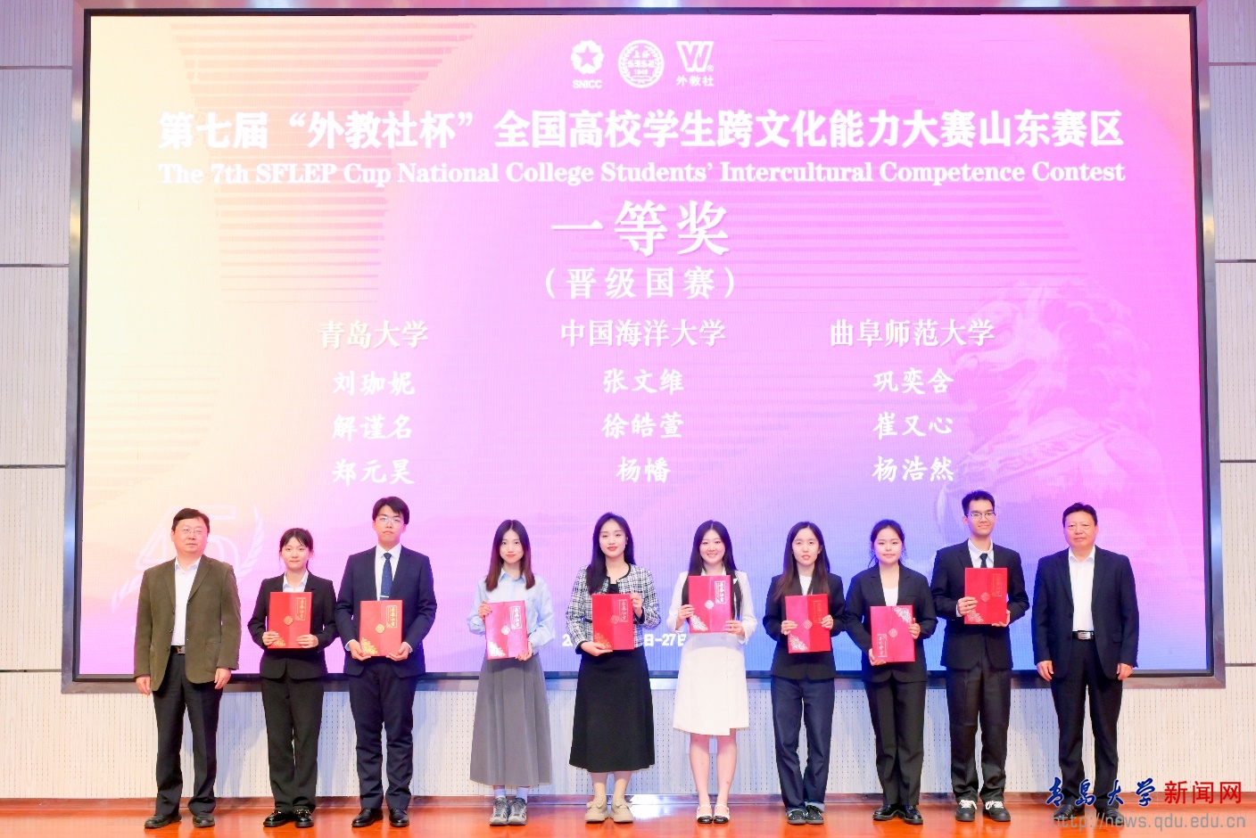 在赛后举行的颁奖典礼上,陈涛和上海外语教育出版社副总编张宏分别代表山东赛区承办单位和全国组委会致辞。颁奖嘉宾为各获奖团队颁发了奖项。