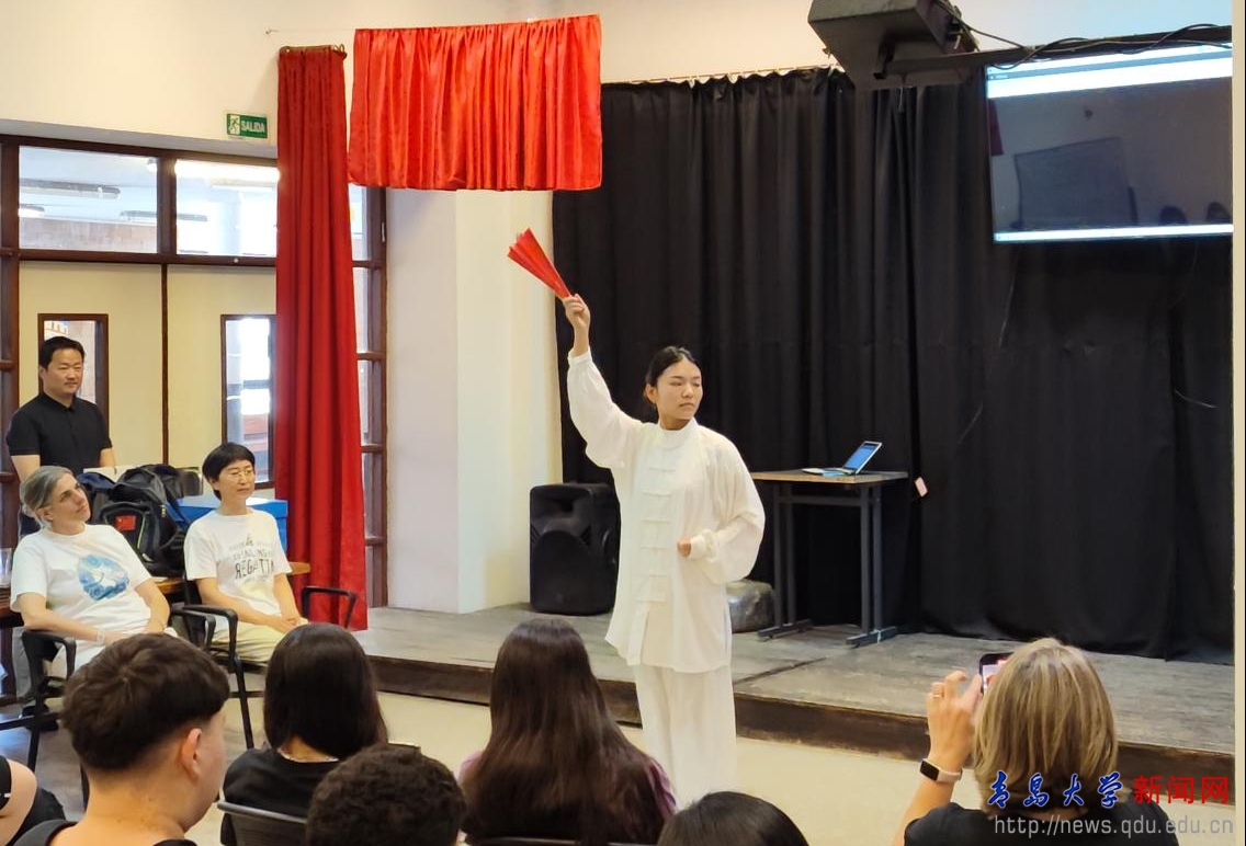 活动开始,孔子学院院长郭梅发表了致辞。她简单介绍了孔子学院,强调了文化交流的重要性,并希望学生们在学习汉语和了解中国文化的过程中有所收获。随后,崔新茹老师表演了太极扇,她的动作行云流水,展示了太极的柔中带刚、静中有动的特点,受到了师生们的赞赏。接下来,王烈陈老师展示了中国书法艺术,并为学生们写下了中文名字。在展示过程中,王老师还讲解了汉字的含义和书写技巧,学生们感受到了书法艺术的博大精深。随后,李宇昊老师带来了一场汉语公开课,教授学生们基础汉语知识,让学生们对汉语的拼音和汉字有了基本的认识。在互动环节中,崔欣茹老师带领学生们踢毽子,并讲解了中国传统游戏的文化背景。