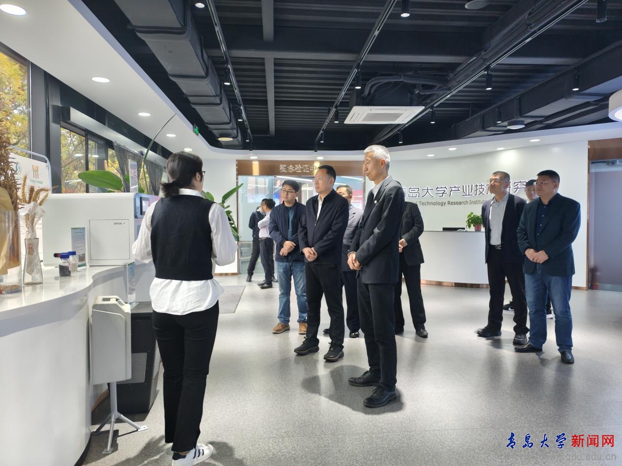 新闻网讯 11月14日上午,中国检验认证集团山东有限公司党委委员、副总经理倪新一行到产业技术研究院调研,校党委常委、副校长刘恩贤陪同参观展厅并主持座谈会,科研成果转化中心主任、产业技术研究院执行院长鲍文胜陪同活动。