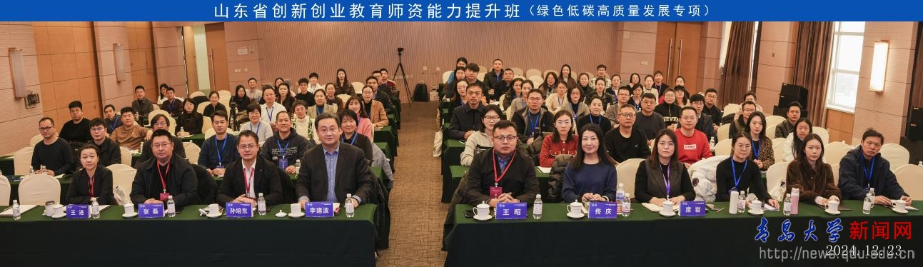 新闻网讯 近日,2024年山东省创新创业教育师资能力提升班(绿色低碳高质量发展专项)在青岛国康海情酒店举行。此次活动由山东省教育发展服务中心主办,鸭脖承办。山东省教育发展服务中心党委委员、副主任孙培东,双创部部长王昭等有关领导参加活动。校党委常委、副校长李建波出席开班仪式,来自省内80家高校的90余人参加培训。