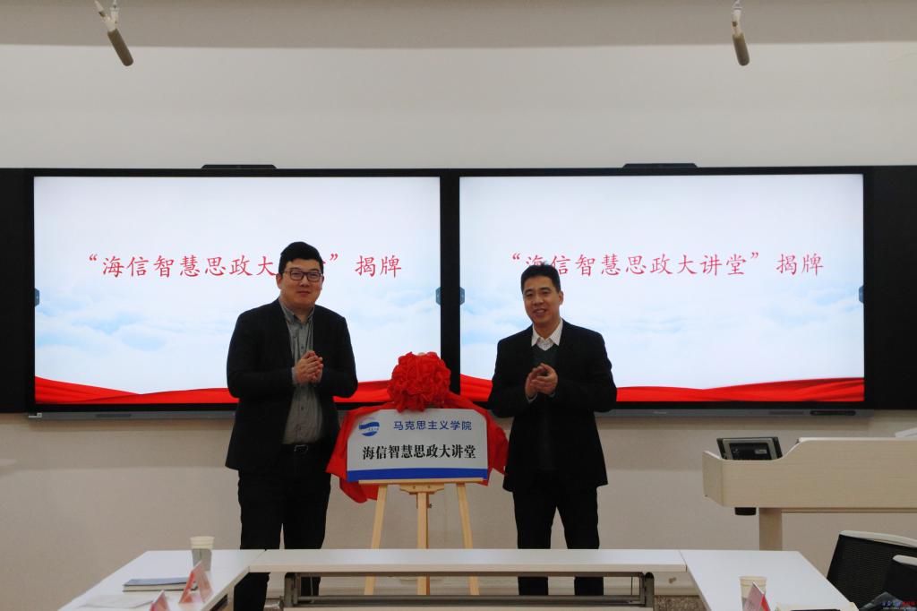 刘杰和马克思主义学院党委书记王传永共同为“海信智慧思政大讲堂”揭牌。