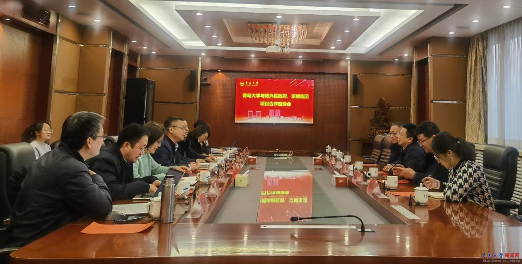 新闻网讯 1月2日下午,滨州市博兴县人民政府一行来访鸭脖。博兴县人民政府党组成员、副县长刘中秋,滨州千乘文旅体育产业集团董事长王绪进,京博集团工会副主席王勇、品牌副总监曹伟参加座谈。校党委副书记肖江南主持会议,人文社科处、产业技术研究院、商学院、教育科学学院相关负责同志参加交流。