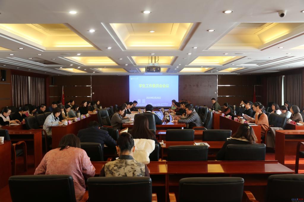 新闻网讯 2月26日下午,2025年春季学期学生工作委员会会议在办公楼407会议室召开,校党委常委、副校长陈涛主持会议并讲话。