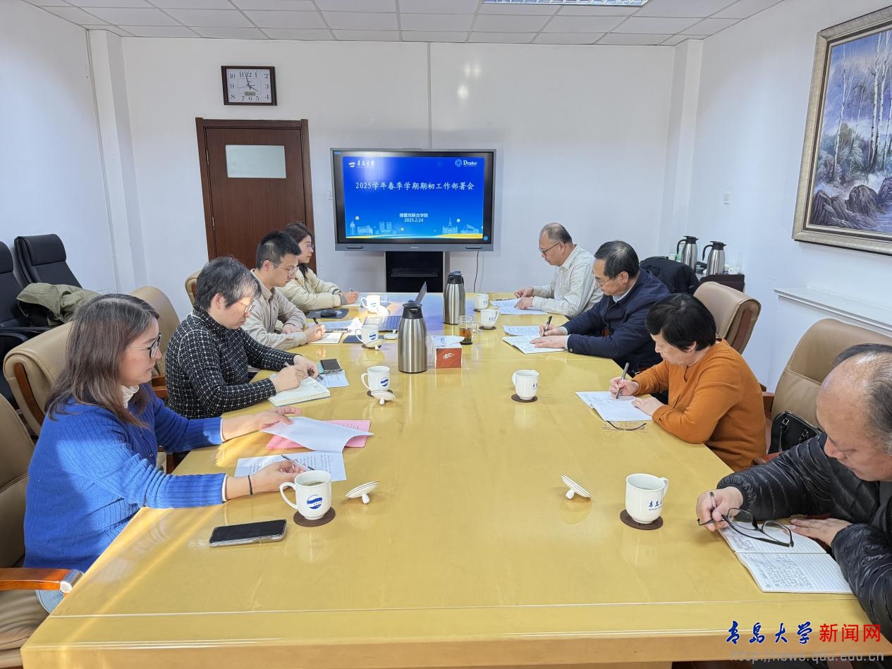 新闻网讯 2月24日下午,德雷克联合学院在浮山校区办公楼212会议室召开2025年春季学期期初工作部署会议。会议由副校级领导、院党委书记、院长李军主持,学院领导班子成员、组织员及教职工代表参加会议。